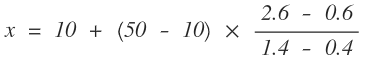 10 [ + ] [ ( ] 50 [ – ] 10 [ * ] [ ( ] 2.6 [ – ] 0.6 [ ) ] [ / ] [ ( ] 1.4 [ – ] 0.4 [ ) ] [ = ]