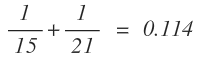 15 [ 1/x ] [ + ] 21 [ 1/x ] [ = ]