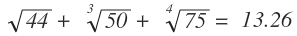 44 [ √ ] [ + ] 50 [ 3√ ] [ + ] 75 [ y√x ] 4 [ = ]