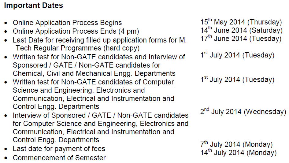 M. Tech. Regular Programmes